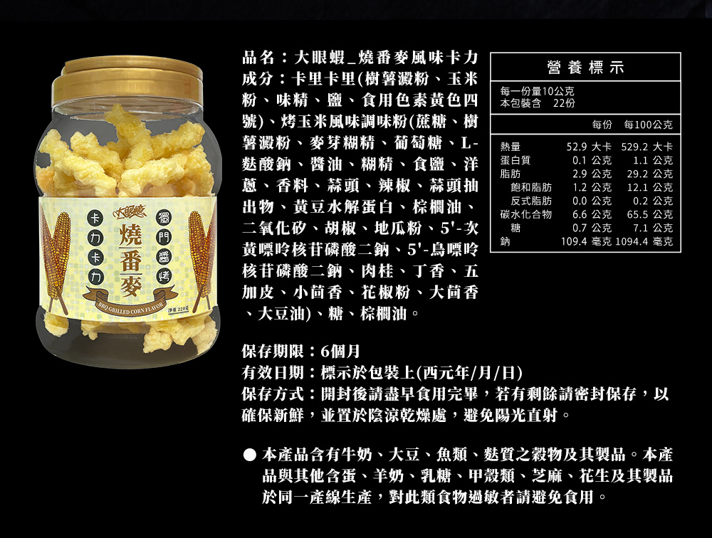品名:燒番麥風味卡力